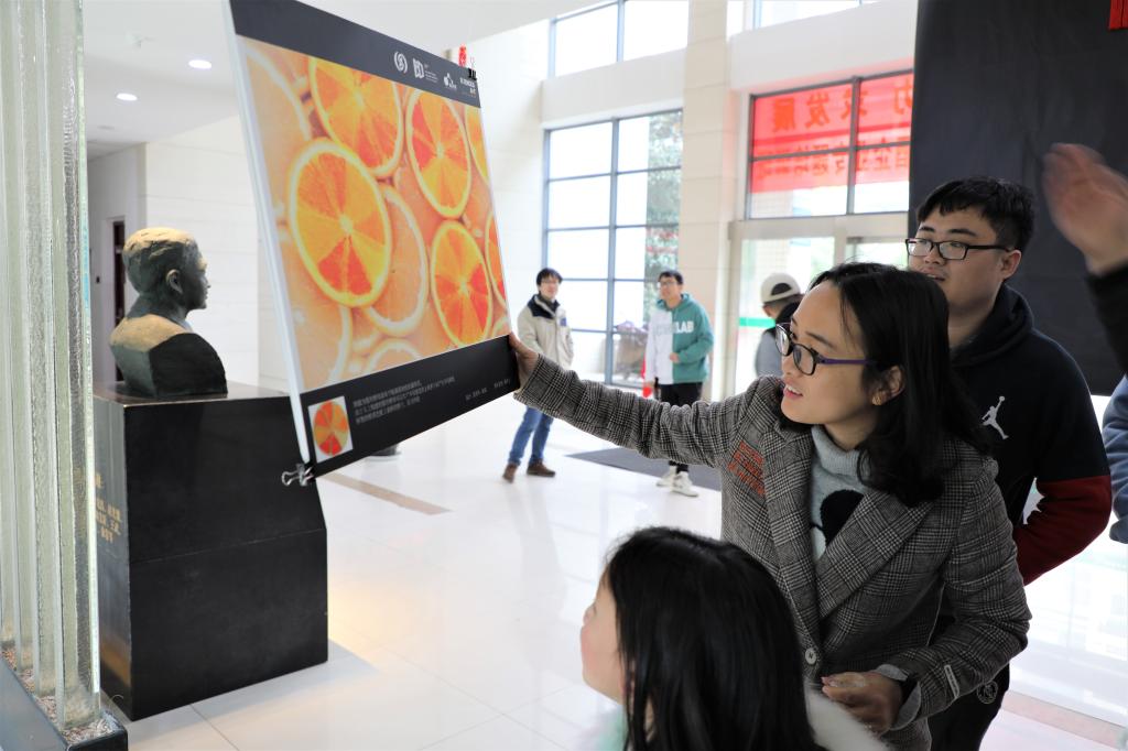 当天,副院长陈献忠教授首先介绍了此次展会“微观世界大艺术”,此次展览的作品均源于两校的学生在科学实验中发现的微观世界的美学,经由设计学院加工润色,最终变为一幅幅生动和谐的艺术品。从科学中发现点滴之美,使科学融合艺术,这也是美育教育的一个重要途径。哈尔滨工业大学航天学院李垚教授讲述了自己的科学艺术之旅。他表示,艺术与科学是一体的,艺术会开阔思维,推动伟大发明家的每一次创新,但是由于种种原因,我们往往会磨灭它。李教授介绍了2005年自己开始科学艺术之旅的经历,他说理工科也从不缺乏艺术的感觉、元素与机会,在实验工作中发现艺术之美,使我们的科学与艺术融合,使我们的逻辑思维和形象思维结合,这会使我们的创新有无穷的动力。并且科学与艺术的融合其实非常简单的,只要我们用心去欣赏生活工作中的艺术之美,人人都是艺术家。